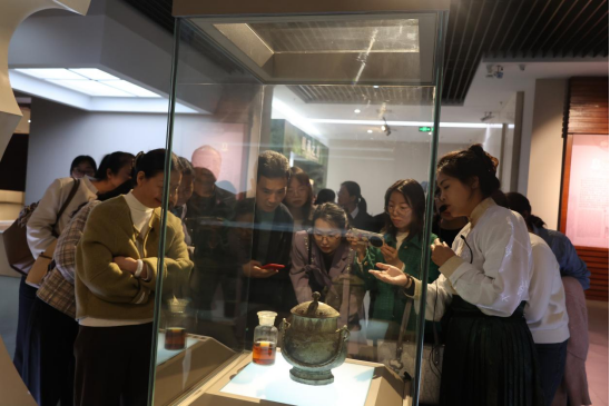 走进信阳市博物馆,学员们跟随讲解员的脚步感受了博物馆“大气、震撼、简洁、环保”和“古老家园、现代表述”的展陈理念。通过参观远古家园、淮上诸侯、楚地王风、天下根亲、茶韵天香、豫风楚韵六大板块,全面、多维地体验了信阳厚重的文化气象。