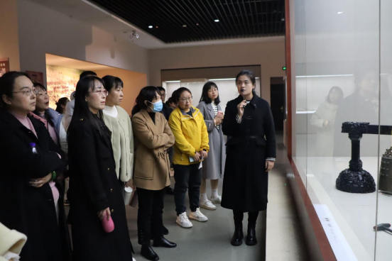 下午3时,研修班学员一行百余人抵达信阳市博物馆。在专业讲解员的带领下,师生们参观了馆内丰富的文物展览,包括古代青铜器、陶瓷、书画等珍贵文物。这些展品不仅展示了信阳深厚的历史文化底蕴,也使学员们对中国古代文明有了更直观的了解。参观过程中,同学们认真聆听讲解,不时提问,表现出浓厚的学习兴趣。