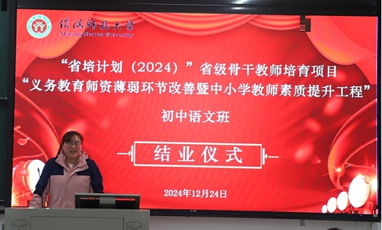 12月24日下午,无料AV “省培计划(2024)”省级骨干教师培育项目初中语文班社科楼121教室举行结业仪式。此次结业仪式由无料AV 培训项目班主任刘宁老师主持。