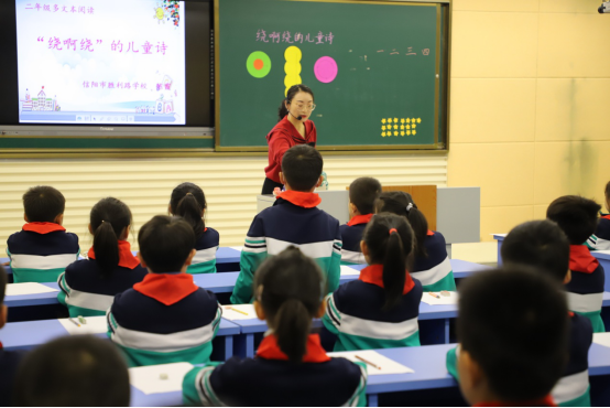 接着由胜利路学校的优秀教师陈霞带领学生为研修班学员们展示了一节精彩的示范课《“绕啊绕”的儿童诗》。陈老师紧扣朗读,综合运用了自由读、男女读、配乐读、“开火车”读、小组赛读和全班齐读等朗读方式,极大地调动了同学们的积极性。活跃的课堂氛围,积极的师生互动,获得了老师们的一致好评。