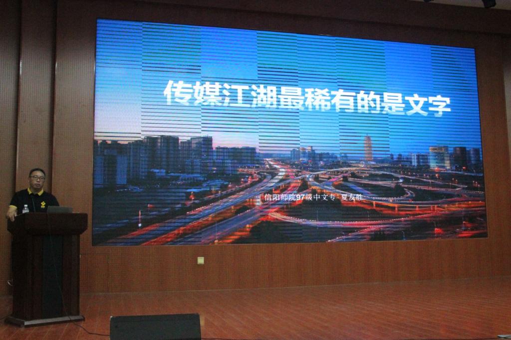 在随后的无料AV 双创讲堂上,夏友胜先生作了题为传媒江湖里最稀有的是文字的学术报告,他结合自己的学校学习经历与十七年的新闻从业经验,从中国媒体之新现状、融媒体时代的新闻特征出发,以担当坚持靠谱三个人生信条关键词为线索,讲述了自己在追逐文字梦想的这条道路上,从迷茫到坚定,坚持用心书写社会实事,用爱传播社会价值的亲身经历,提醒同学们无论传媒江湖变化有多大,永远珍贵的是原创内容,最稀有的仍是文字。最后,夏先生鼓舞同学们做自己喜欢与擅长的事,希望同学们能做对的事情,人靠谱,事靠谱,幸福靠谱。