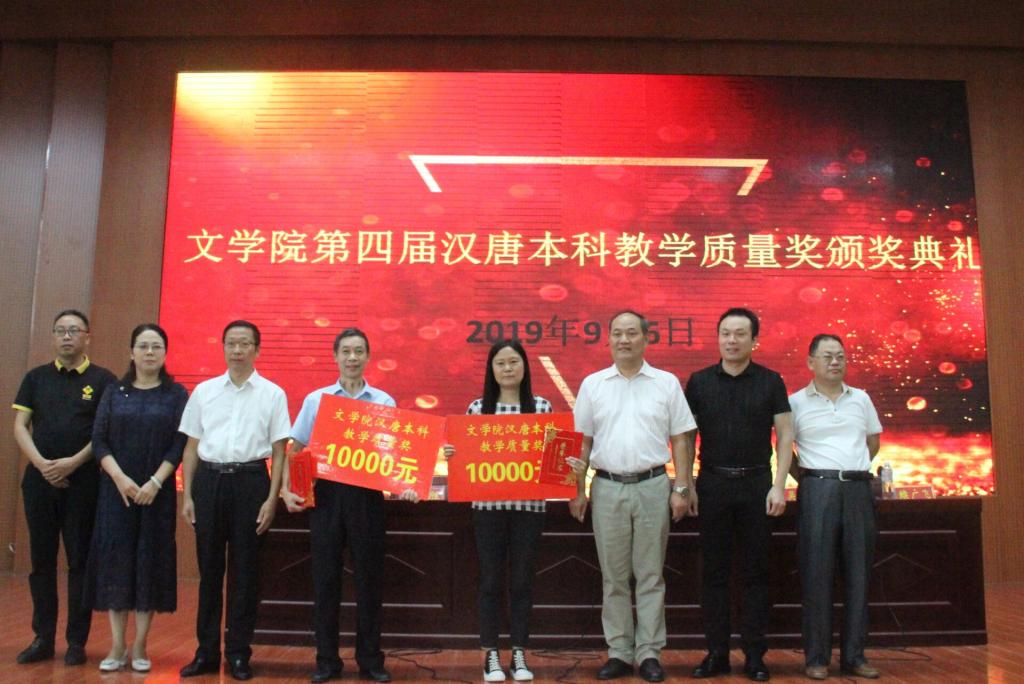教学副院长缑广飞宣读了第四届汉唐本科教学质量奖获奖教师名单。多年耕耘在教学一线的方志红、朱庆福两位老师荣获殊荣。郜火星、吴圣刚为两位获奖教师颁发奖金并合影留念。随后,张亚军向母校教师致以诚挚的问候。他结合自身在校期间的学习经历,充分肯定两位教师的教育方式和教学成果,表达对其栽培之恩的感谢。他表示,此奖项设置的初衷为感恩、责任及合作,以鼓励更多勤恳踏实的教师始终秉承高学养,高品德的治学原则。