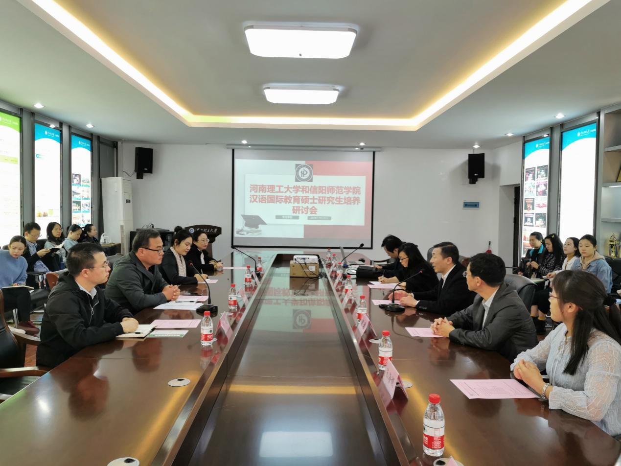 上午9点,在河南理工大学文法学院121会议室,双方人员开展了充分的研讨交流。对方出席人员有河南理工大学文法学院院长冒建华、副院长谢珺、中文系主任曹爽、汉语国际教育中心主任张海媚、研究生工作秘书刘坡、汉语国际教育专业教师闫克、葛锴桢;我方出席的人员有副院长张言军、汉语国际教育专业负责人朱敏霞、汉语国际教育专业教师钱道静、毕晋。河南理工大学2019级汉语国际教育专业硕士研究生也参加了讨论。