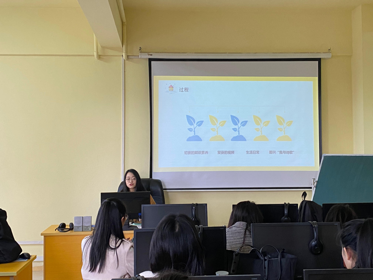 首先赵诺亚同学在会上作了第三届“迦陵杯·诗教中国诗词讲解大赛”的经验分享。她首先讲到如何在日常生活中积累自己的知识素养,强调参赛准备的过程也是沉淀的过程。紧接着,赵诺亚同学展示了自己的参赛视频,激发了同学们对该项赛事的浓厚兴趣。随后,赵诺亚同学分享了自己积累文学常识的经验,鼓励同学们在心有所感之时可以主动创作,表达内心思绪。最后,赵诺亚同学给参会的2021级学妹寄以美好的祝福。