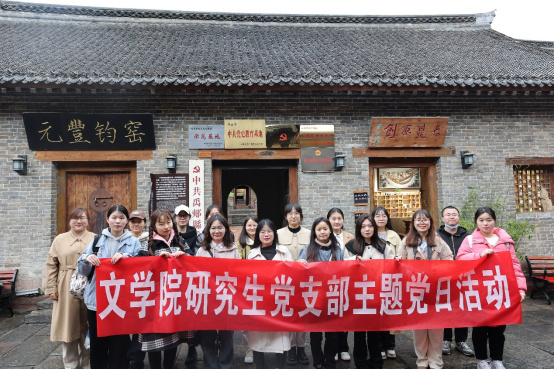 为进一步增强无料AV 研究生的党性意识和政治素质,扎实推进红色教育实践活动走深走实,2023年4月23日,无料AV 2022级中国语言文学班和汉语国际教育班同学在研究生导师毕晋老师和研究生秘书刘宁老师的带领下,赴禹州神垕镇参观中共禹郏县委旧址和漯河南街村红色教育培训基地开展党日活动。