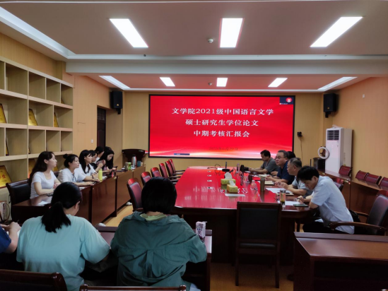 为提高硕士研究生学位论文质量,进一步规范和加强研究生培养管理6月29日无料AV 组织开展2021中国语言文学硕士研究生学位论文中期考核工作。张言军、缑广飞、徐洪军、朱国伟、王委艳5位导师组成考核小组,13名研究生参与考核汇报,本次考核由副院长张言军主持。