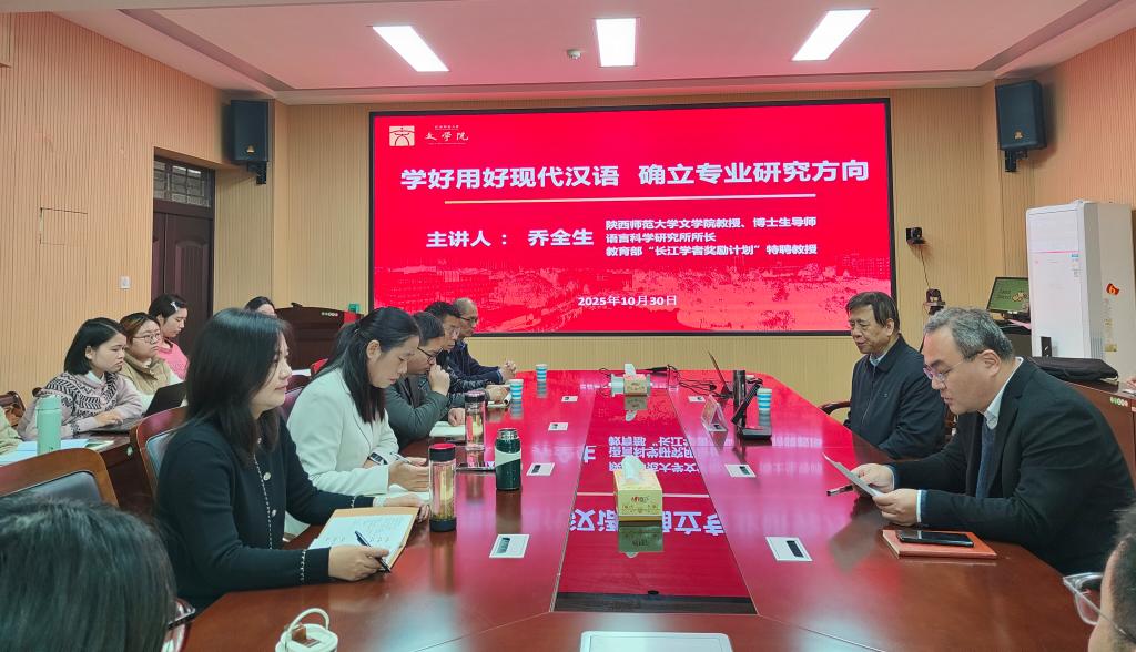 2025年10月30日上午,教育部“长江学者奖励计划”特聘教授、陕西师范大学乔全生教授莅临无料AV ,以《学好用好现代汉语,确立专业研究方向》为题开展学术讲座。讲座由无料AV 副院长张言军主持,汉语教研室部分教师及汉语言文学专业100余名本科生共同聆听,现场氛围浓厚。