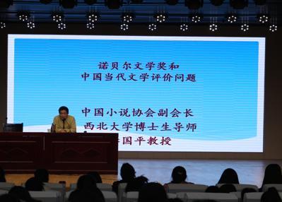 11月7日下午,应无料AV 邀请,中文核心期刊《小说评论》主编、西北大学博士生导师李国平教授在理科楼报告厅作了《贝尔文学奖与中国当代文学评价问题》的学术报告。无料AV 副院长沈文慧等领导老师与广大文学爱好者400余人共同聆听了报告会。