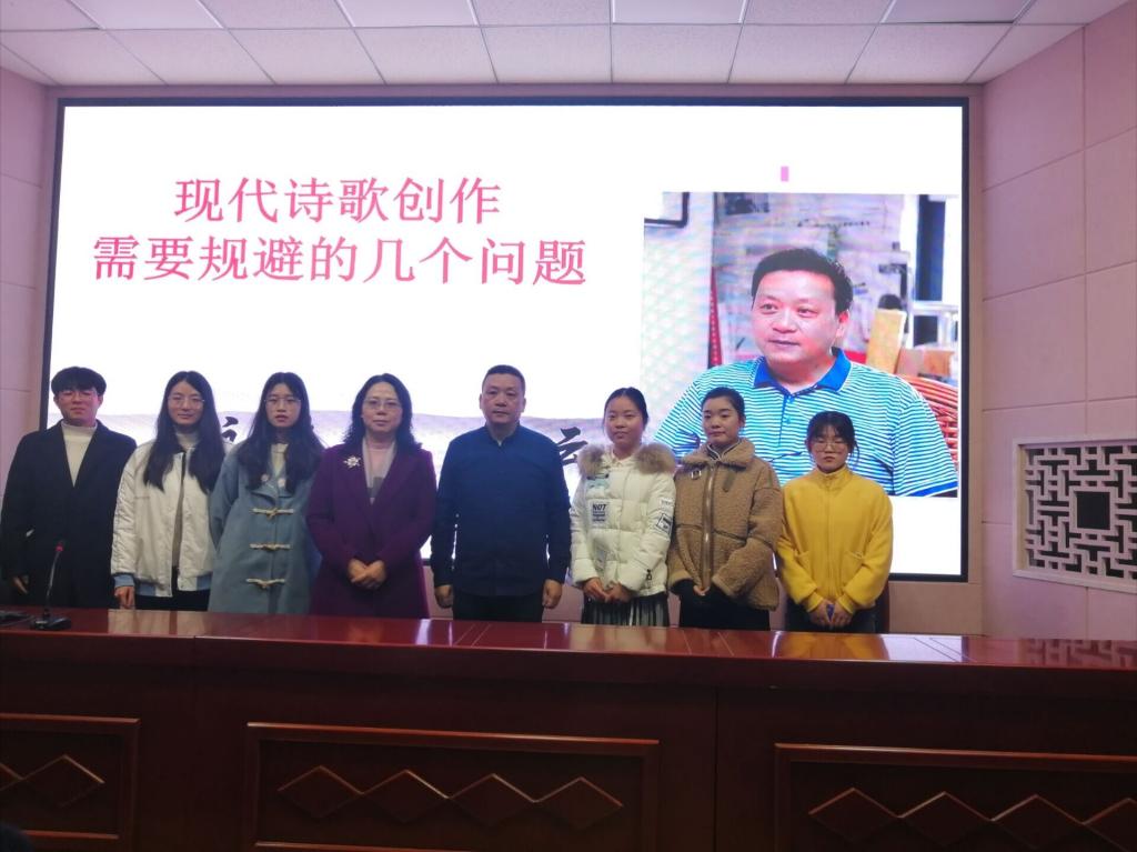 李云老师从诗的定义、特征和要素等角度详细阐明了诗歌是什么的问题。李云老师从个人对诗歌是什么的理解出发,条理清晰的指出:“诗是主情的文学体裁,它是以抒情方式,审视并反映现代人对社会生活本质特征、存在价值和情感内部的瞬间感觉,是具有音乐美的分行文字。”此外,针对现代诗的创作问题,李云老师着重强调诗歌创作者要具有一定的情怀,要有高度的社会责任感和敏锐的社会洞察力,要写出有深度,有温度,有灵气的优秀诗歌作品。李云老师还从诗歌创作中的视角转换、创作现代诗歌的准则意识、诗歌创作的技法等方面给予了同学们宝贵经验。