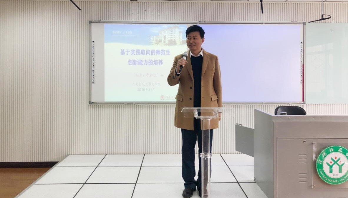 2019年11月7日上午,由教师教学发展中心举办的“基于实践取向的师范生创新能力的培养”为的讲座在教7楼501进行。河南师范大学无料AV 教授、教育学博士、硕士生导师,语文课程教法教研室主任,耿红卫教授为无料AV 老师及学科教学(语文)方向研究生们进行了一场别开生面的精彩讲座。
