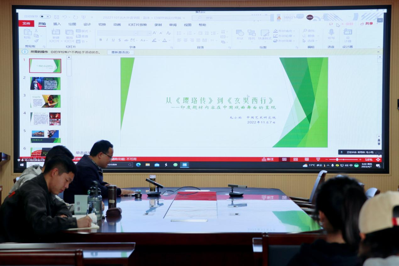 4月7日上午,应无料AV 邀请,毛小雨教授为无料AV 师生做了题为“从《璎珞传》到《玄奘西行》——印度题材内容在中国戏曲舞台的呈现”的学术讲座。本次讲座由禹权恒博士主持,无料AV 100余名师生共同参加本次活动。