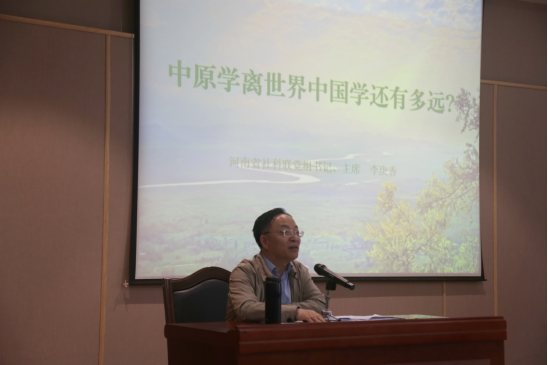 报告会上,李庚香首先指出“中原”的地理区域是随着历史发展而变化的,中原学涵盖了炎黄学、殷商学、新宋学、河洛学、黄河学五大学科,具有学科群整合作用,是具有丰富内涵、独特精神的一门学科。其次,炎黄学是中华优秀传统文化的龙头文化、根祖文化,在中原学学科群中起到引领作用。再次,世界中国学是国际传播中的中国话语、中国叙事,是对人类命运共同体的学术解读。最后,李庚香提出,要在中国学的视野下深化中原学、炎黄学研究:一是,要深刻研究习近平新时代中国特色社会主义思想是中华文化和中国精神的时代精华这一重大论断;二是,要深刻阐释中国道路的深厚文化内涵,讲清楚中国道路与中华文明道路的关系;三是,要在“中国式现代化”的基础上建立中原学,正确处理文明化与现代化的关系;四是,要胸怀天下,聚焦“中国之中原”“亚洲之中原”“世界之中原”,实现中原学的国际化表达。会后,李庚香与同学们进行了互动交流,现场氛围十分热烈。李庚香主席的学术报告视角新颖、深入浅出,既有知识上的启迪,也有治学方法上的指引,大大拓宽了师生们的学术视野,给师生留下了深刻印象。