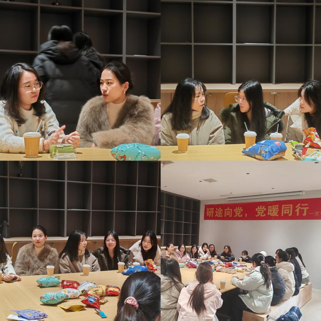 活动现场暖意融融,支部党员们精心布置场地,准备了茶水、零食等暖心物资,营造了轻松温馨的交流氛围。崔越、柳家琪两位老师与考研学子们围坐一堂,亲切交流谈心。她们详细询问了学子们的复习进度、备考状态及生活困难,耐心倾听大家在冲刺阶段遇到的焦虑与困惑,结合自身经历分享了心态调节、时间规划的实用方法,鼓励大家以坚定的信心、从容的心态应对考试,叮嘱大家注意劳逸结合,保持良好身心状态。交流过程中,支部党员们主动为学长学姐们加油鼓劲,分享校园资源与备考经验,现场欢声笑语不断。大家在轻松的氛围中卸下压力、畅所欲言,不仅感受到了党支部大家庭的温暖,更坚定了“一战成硕”的决心。