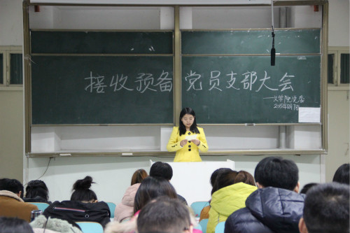 (本网讯 郭西梁吴婷婷李倩)12月7日晚,无料AV 学生党支部在人文楼309教室召开接收预备党员支部大会,党委秘书郭西梁与学生党支部全体党员及新一批党员发展对象共同了参加此次会议。本次支部大会主要讨论接收倪天娇等33名同志为中共预备党员的问题。