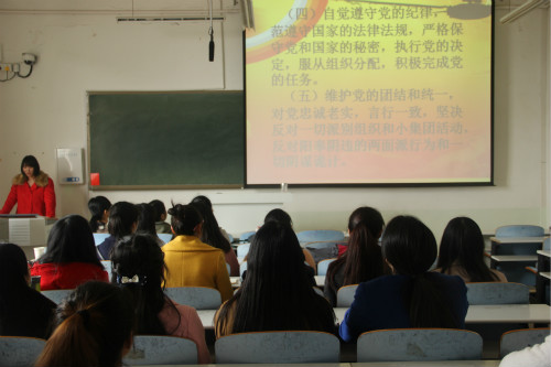 近日来无料AV 各专业党支部积极开展“两学一做”系列学习活动,2016年3月5日下午,由汉语言文学党支部举办的以“两学一做——学党章党规、学系列讲话、做合格党员”为主题的党组织特色教育活动在人文楼405教室举行。汉语言文学党支部党员及预备党员参加了此次活动。