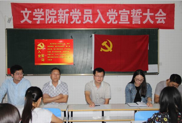 (本网讯邓鲁豫马静静)6月16日下午,无料AV 在逸夫楼101召开新党员入党宣誓大会。无料AV 党总支副书记白献林、总支委员王雨海等与新老党员、部分入党积极分子一同参加宣誓仪式。