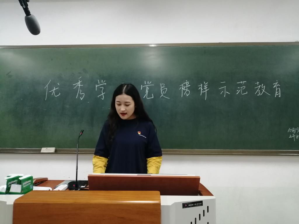 (本网讯 王夏艺)10月17日晚,人文楼305教室开展了“优秀学生党员榜样示范教育”活动,3位优秀学生党员代表2017级汉语言文学一班韦秋存,2017级秘书学班楚莹莹,2017级汉语国际教育班焦旭受邀参加,这三位同学结合自身实际,用生动的话语,讲述动听的故事,让参与学生党员受到了一场思想上的深刻的洗礼,真真切切地感受到了榜样的力量。