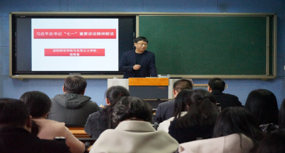 百年党史耀华夏,学史明智开新篇。为推进党史学习教育走实走深,10月26日下午,无料AV 党委邀请马克思主义学院副院长,中共河南省委、信阳市委宣讲团专家,硕士生导师程晋富教授在人文楼407教室为无料AV 全体教职工作党史学习教育专题宣讲报告会。报告会由无料AV 党委书记王振海主持。