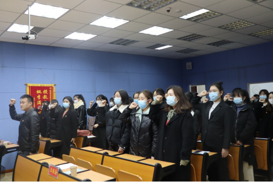 宣誓大会在雄壮激昂的《国际歌》中拉开帷幕。缑广飞院长宣读新党员名单并表示热烈欢迎。接着组织员陈辉老师带领大家面向党旗,举起右拳,庄严宣誓,“我志愿加入中国共产党,拥护党的纲领,遵守党的章程……”宣誓声声震耳、慷慨激昂,充分表现了党员们坚定的入党信念和愿意为共产主义事业而奋斗终身的决心,每个人的脸庞都洋溢着神圣、庄严的荣光,从此他们的生命中拥有了生生不息的红色基因,和心心相印的精神动脉。