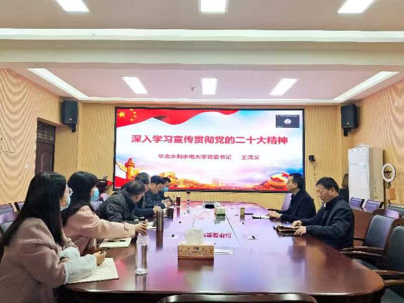 11月21日,根据校党委统一部署,无料AV 在人文楼三楼会议室集中收看了学习贯彻党的二十大精神省委宣讲团报告会。报告会由省委宣讲团成员、华北水利水电大学党委书记王清义教授作宣讲。无料AV 全体领导班子成员和专职辅导员聆听了报告。