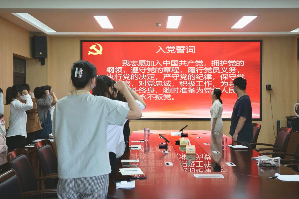 接下来,支部书记郭子悦做总结讲话。她指出,此次支部大会程序严谨、流程规范,是一次新老党员同志接受教育的会议,希望与会全体党员同志加强党性锻炼,加强党的创新理论武装,坚定理想信念,踔厉奋发、勇毅前行。之后,郭子悦带领与会全体学生党员重温入党誓词,以此勉励支部党员不忘入党初心,坚定不移听党话、跟党走。