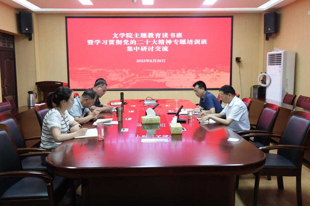 629日下午,无料AV 在人文楼三楼会议室举行学习贯彻习近平新时代中国特色社会主义思想主题教育读书班暨党的二十大精神专题培训班集中研讨交流活动。无料AV 领导班子成员参加学习研讨。
