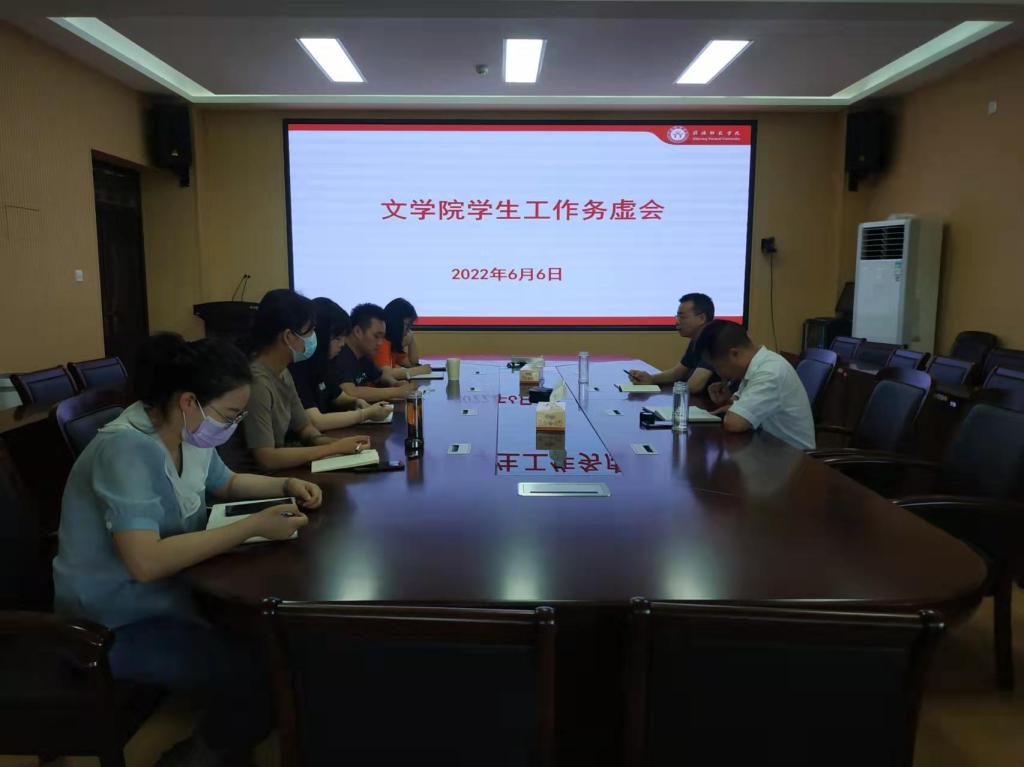 6月6日上午,无料AV 在人文楼3-7会议室召开2022年学生工作务虚会。党委书记王振海、副书记王家宏、专职辅导员参加会议。会议由王振海主持。