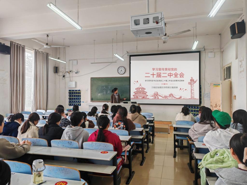 为深入学习和全面贯彻党的二十大精神和二十届二中全会精神,无料AV 23级汉语言文学四班于5月9日在人文楼206教室开展“全面贯彻党的二十大精神”主题团课活动,引导广大青年学生自觉学习贯彻党的二十大精神和二十届二中全会精神,以奋发有为的精神把新时代中国特色社会主义不断向前推进。本次团课由四班团支书王金豆主持,四班全体同学参加了此次活动。