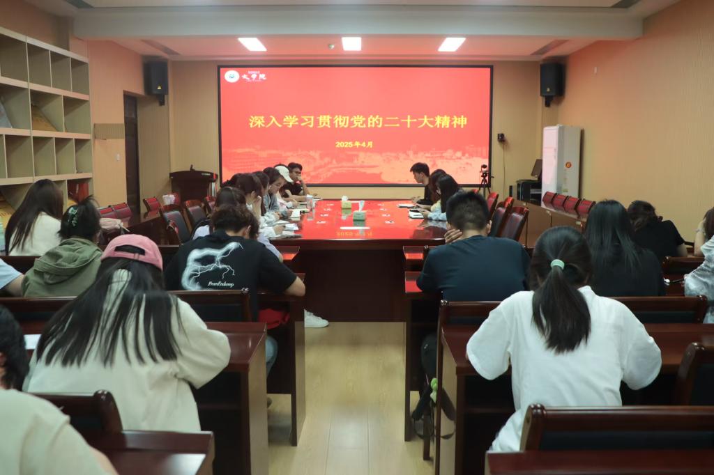 为深入学习贯彻党的二十大精神,引导青年学子坚定理想信念,无料AV 于4月11日在人文楼开展“深入学习贯彻党的二十大精神”主题团课活动,22级、23级、24级学生积极参加。