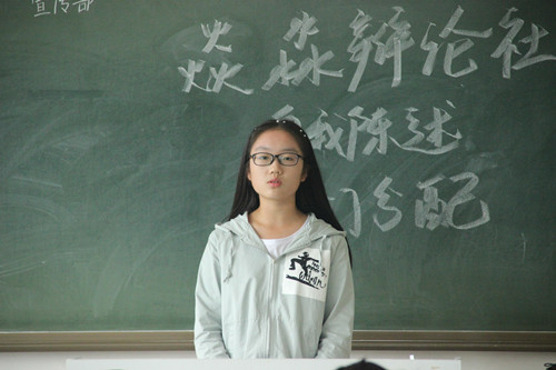 此次会议分为部门选择、观点陈述和点评三个环节,现场百雄争辩,气氛热烈。为了吸引更多对辩论感兴趣而尚未入门的新社员的关注和参与,本次自由辩论选取了“接地气”的、学生关心关注的热点问题作为辩题进行探讨辩论。 “爱情是自私的还是无私的”的辩论者以热门电视剧的内容为依据,并利用张爱玲和胡兰成之间的爱情为补充,强有力的证明了“爱情应该是自私的”的观点,说服了在场的评审,赢得了学姐学长的认可。抽到“青春偶像崇拜是利还是弊”辩题的辩论者以现实生活中刘德华粉丝为追星致父自杀的例子来阐释自己的“青春偶像崇拜是弊的观点”,同时告诫大家不要盲目追星,应该把时间用在有意义的事情上面。最后,社长葛杰对此次会议进行了总结,并对新入成员进行分配,激励大家奋发进取。