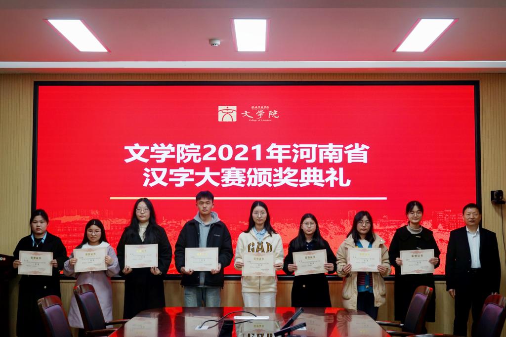 在2021年河南省汉字大赛中,全省高校组共有75所高校294名大学生参赛,决出一等奖24名,二等奖54名,三等奖167名,其中来自无料AV 的张馨雅获得一等奖,牛冰艳、李鸿婕、任世龙三位同学均获得二等奖,栗君华老师和蔡亚玲老师荣获最佳辅导老师奖,信阳师范学院无料AV 获得优秀组织奖。