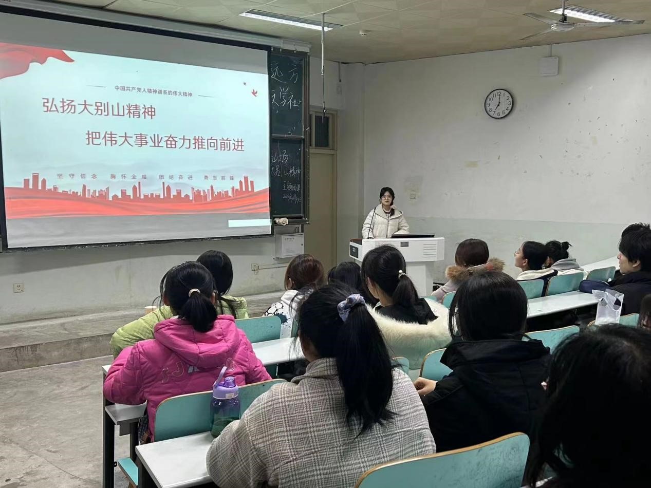 本次团课由团支书王琳主持。首先,团支书以PPT的形式,围绕具体内涵、精神源泉、时代价值等方面对大别山精神作了详细的介绍,倡导大家学习和弘扬大别山精神。其次,社长路舒涵就当代大学生如何在学习和日常生活中践行大别山精神发表了自己的意见,同学们纷纷表示了认可。随后,大家一起观看了电影《风雪大别山》,在影片中进一步感受大别山精神的精神内涵。最后,同学们纷纷抒发了自己的感受,并表示将永远不会忘记老区和老区人民的牺牲与贡献,在生活中积极发扬大别山精神,为进一步推进先辈们开创的事业而奋斗。
