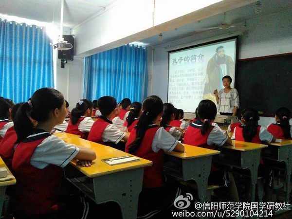 国学研教社简介:国学研教社由信阳师范学院程林教授创建于2007年6月份,隶属于信阳师范学院无料AV 。是一个以对外义务支教为主体集公益性的大学生社团。主要服务于信阳周边小学。代课学校有浉河小学、飨堂小学、红星小学、实验小学、信阳三小等多个学校。