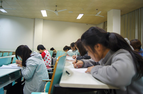 比赛开始前,社团主要负责人简要介绍了比赛题目及规则,并强调了相关注意事项,希望参赛者能严格遵守比赛纪律,端正比赛作风,并预祝参赛者都能取得好成绩。赛场中,参赛同学仔细研读新闻题目,认真思索写作构架,片刻后,大家奋笔疾书,纷纷书写自己心中的优秀人物,气氛安静而紧张。规定时间内,参赛者纷纷呈上新闻,陆续离开教室。