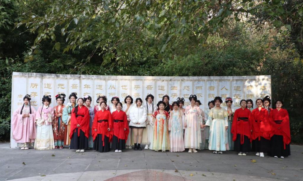 为了传播汉服文化,增强民族文化自信心,11月26日,无料AV 国学经典研教社顺利于师说碑举办了汉服展活动,并面向全校师生开展。