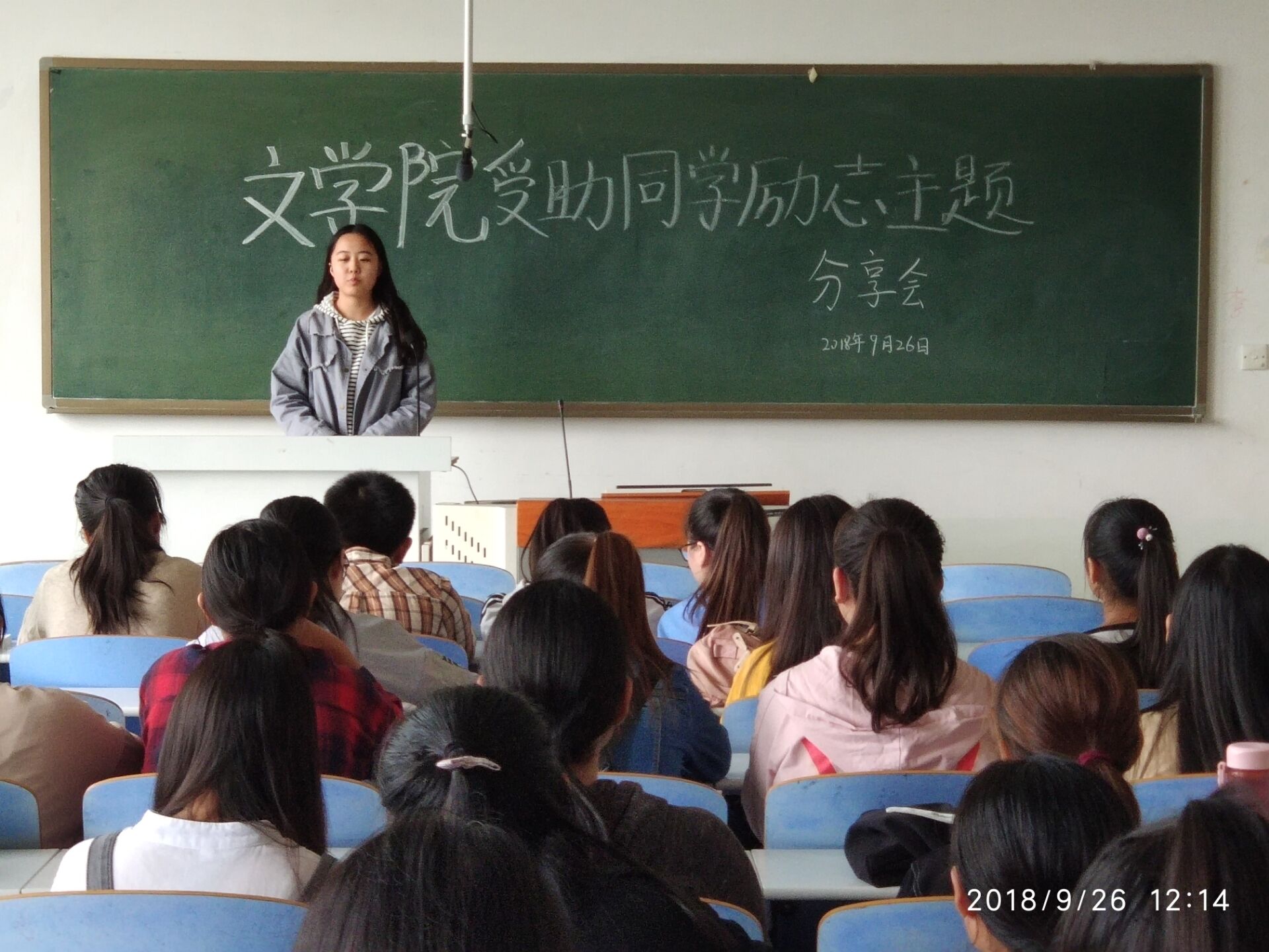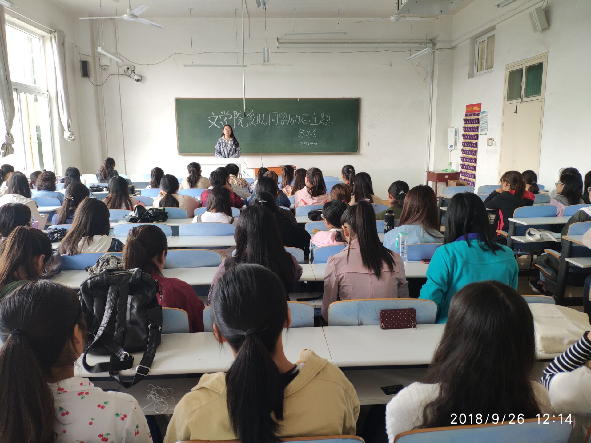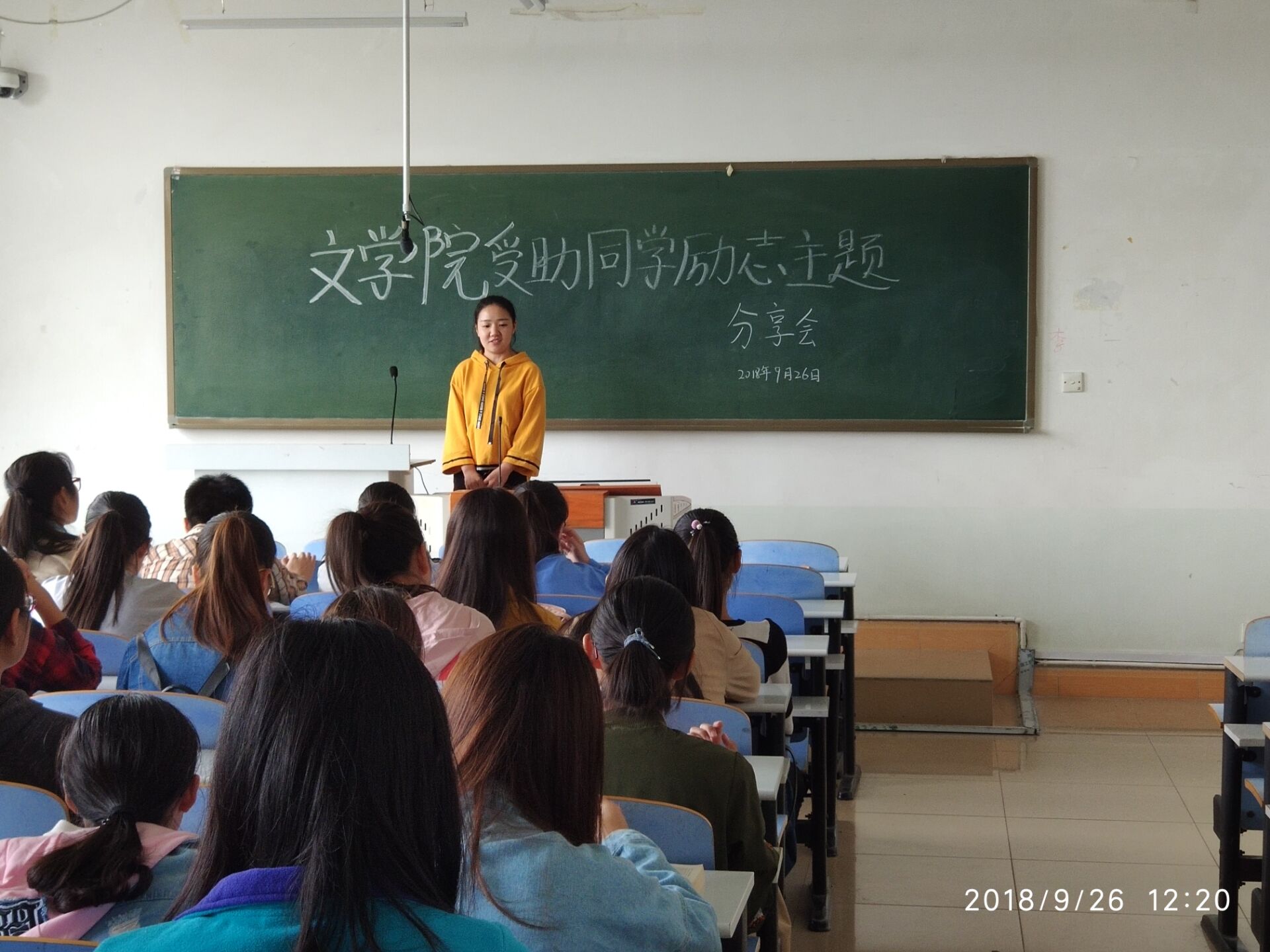 (本网讯 刘艳)2018年9月26日中午,无料AV 在人文楼305教室举行受助同学励志主题分享会。无料AV 资助干事曹宇老师、学生会生活部部长刘艳和受助同学参加。