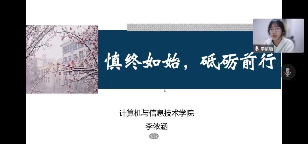 为全面落实国家资助政策,进一步拓展学生资助工作的育人功能,充分展示无料AV 学生的精神风貌,发挥发挥国家奖学金获得者、校园明星、自强之星等青年榜样的先进典型导向作用,引领全校师生共同进步。11月30日晚19点,由无料AV 学生处资助中心主办、无料AV 和美术与设计学院共同承办的2022年“榜样红·身边的榜样”宣讲活动以线上腾讯会议的形式举行。无料AV 计算机与信息技术学院国家奖学金获得者李依涵、历史文化学院自强之星孙晗和马克思主义学院校园明星郭振宽受邀进行宣讲。无料AV 资助专员柳家琪老师、美术与设计学院资助专员郑波老师,以及来自两个学院的三百多名学生,共同聆听了本次宣讲。