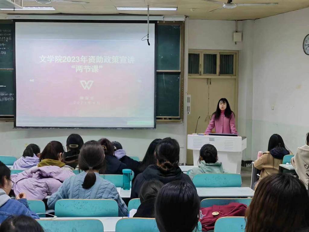 为增进学生对资助政策的了解,使“资助育人”的思想深入人心,4月24日晚7:30,无料AV 于人文楼409教室组织召开了毕业生资助“两节课”宣讲活动。无料AV 资助专员柳家琪老师针对相关资助政策为大家进行宣讲。
