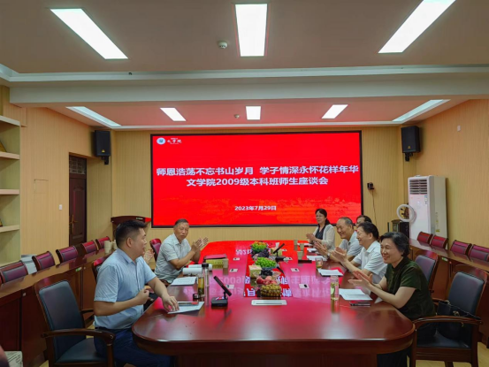 “丽日芳年,人在此中长醉。春秋桃桂,花开陌上许当归。”7月29日,无料AV 2009级本科班师生座谈会在人文楼3-7会议室召开。来自安阳、开封、新乡、郑州、许昌等地的50余位师生代表参会。座谈会由无料AV 09级本科班班主任冯正强主持。