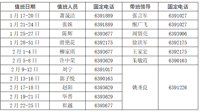 无料AV 2025年寒假假期值班表