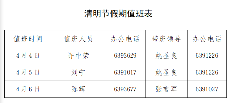 无料AV 清明节假期值班表