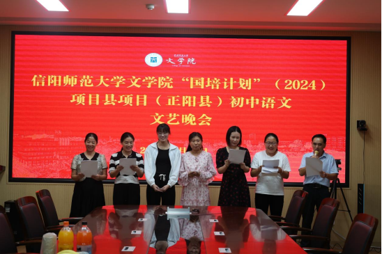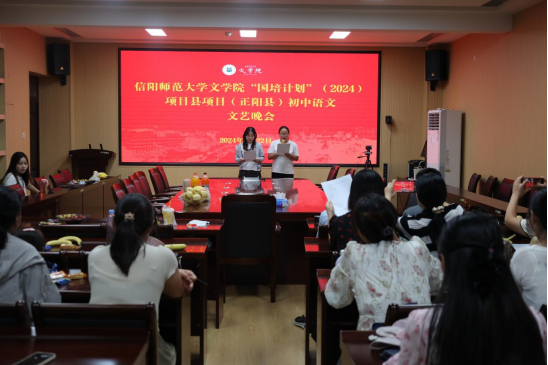 8月22日晚,“国培计划”正阳县初中语文骨干教师研修班文娱晚会在人文楼三楼会议室顺利举行。晚会由文娱班长冯楠楠主持,培训学员、班主任及学生助理欢聚一堂,共同参与并观看此次晚会。