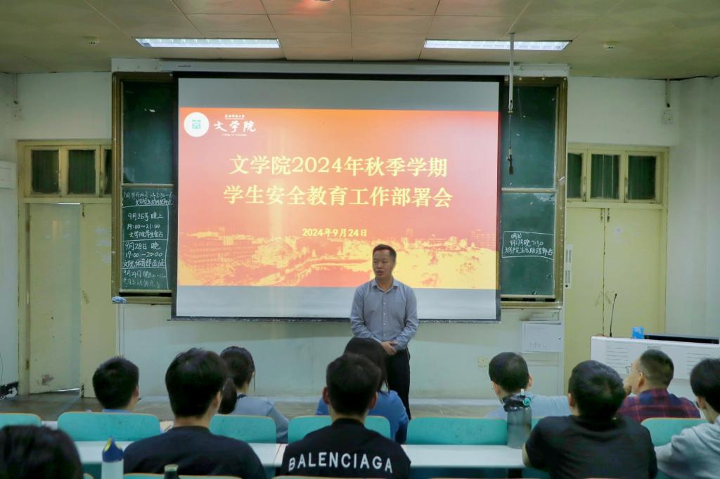 为切实做好新学期学生安全稳定工作,进一步压实安全责任,9月24日,无料AV 在人文楼409教室召开2024年秋季学期学生安全教育工作部署会。无料AV 党委副书记王家宏主持会议并讲话,全体班主任、班长、团支书和心理委员参加会议。
