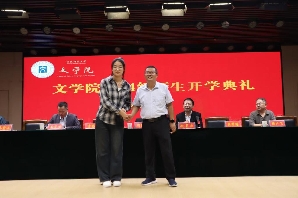 2022级汉语言文学三班轩艳艳作为老生代表分享了自己在师大的求学时光和学习感悟,勉励学弟学妹们要志存高远、积蓄实力,在学习中不断充实自我,在实践中不断夯实本领,让青春在奋斗中绽放绚丽之花。新生代表、2024级汉语言文学创意写作班衡昊宇在发言中表示,要以咬定青山不放松的韧劲,以不畏艰难的勇气和拼搏进取的精神迎接大学生活的挑战,奋力书写属于自己的精彩。教师代表牛利老师结合自己十余年的教学经历,与学生们探讨在大学中成长为更优秀自己的发展路径,祝愿同学们都能够学有所获、学有所成,在追“光”前行中一路生花。