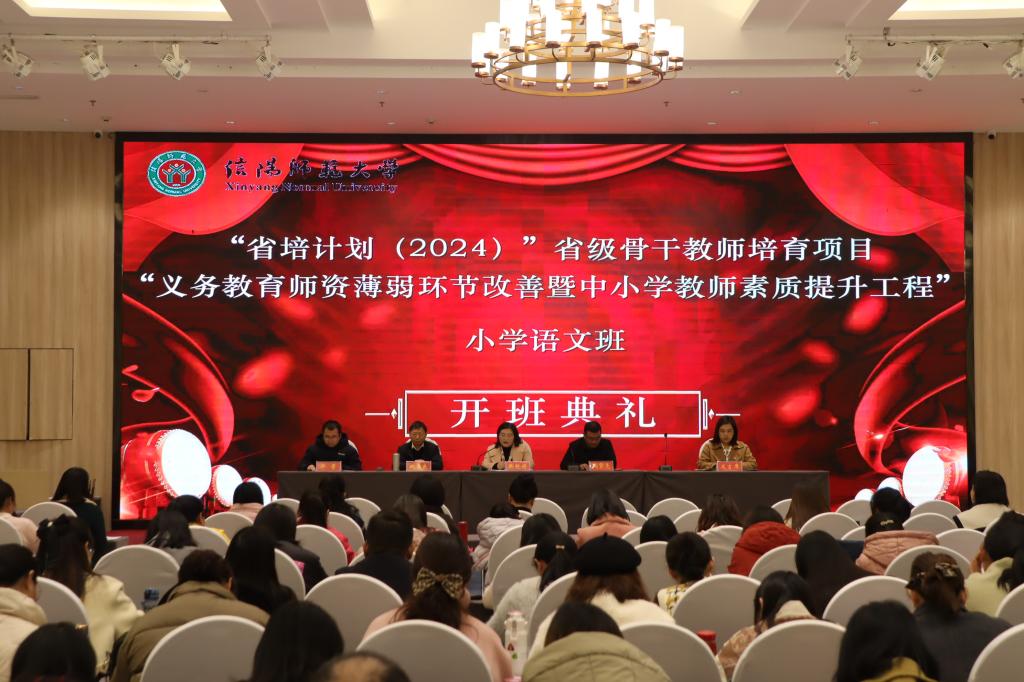 11月29日上午,“省培计划(2024)”省级骨干教师培育项目小学语文班开班典礼于信阳市华悦酒店一楼会议室成功举行。出席此次典礼的有河南省中小学教师校长研修院副院长兼教务处副处长韩艳婷、无料AV 党委书记周贤亮、无料AV 院长姚圣良、培训班班主任毕晋、学员代表信阳市第十三小学张巧林,以及来自全省的162名小学语文骨干教师。典礼由无料AV 党委书记周贤亮主持。