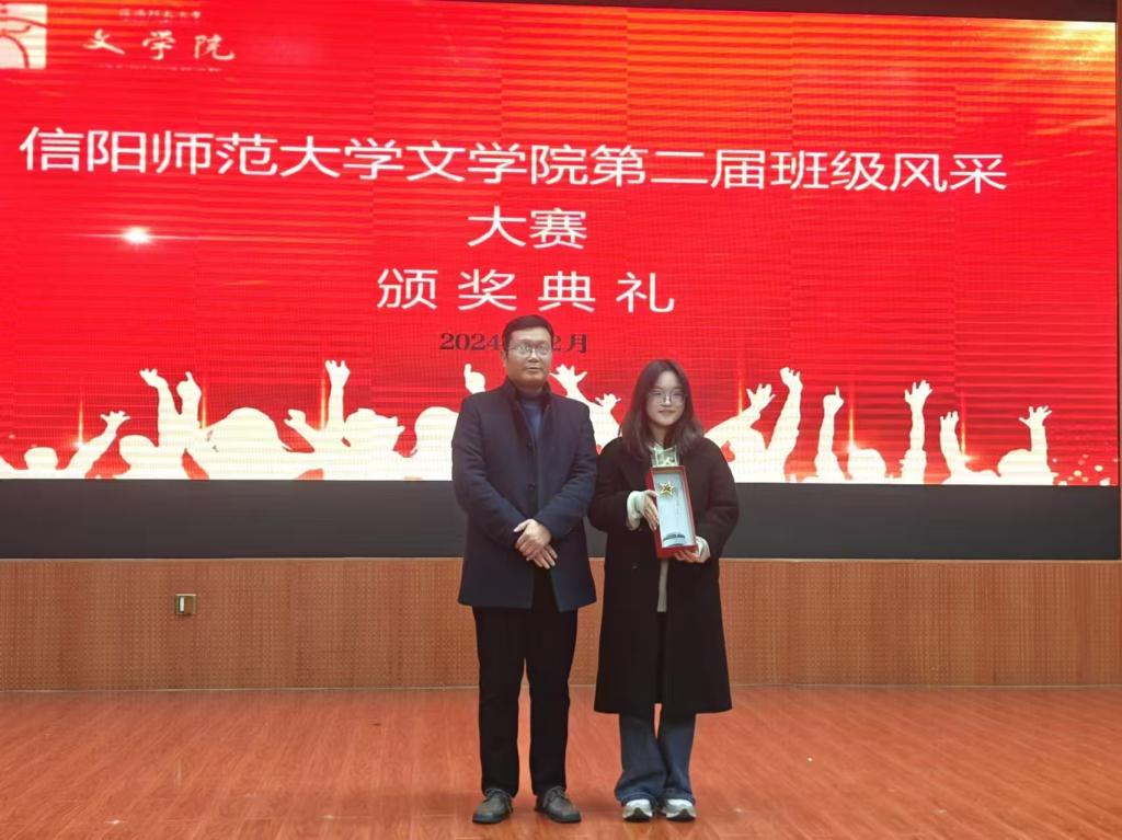 经评委投票,2024级创意写作班获得一等奖,2024级汉语国际班、2024级汉语言文学一班获得二等奖,2024级汉语言文学二班、三班、四班获得三等奖。此外汉语国际班荣获最佳创意奖,创意写作班荣获最佳才艺展示奖和最佳文化展示奖。现场领导、老师为获奖选手颁奖。