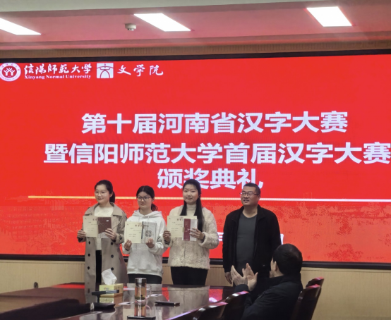 典礼伊始,张言军介绍与会人员并宣读了获奖名单。接着,无料AV 书记周贤亮、院长姚圣良和副院长缑广飞分别为在第十届河南省汉字大赛和无料AV 汉字大赛中获奖的同学颁奖。