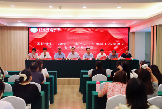 2025年9月14日上午,“国培计划(2025)”平舆县小学语文骨干教师研修班开班典礼在信阳市华悦酒店三楼会议厅举行。无料AV 教务处副处长周学勇、平舆县教育局党组成员赵洞生,无料AV 党委书记周贤亮、院长姚圣良、副院长缑广飞,平舆县教育局教师教育股股长房长芳,研修班班主任许中荣、张永纬,平舆县外国语小学教师谢家玉(学员代表)及来自平舆县的100名小学语文骨干教师出席典礼。典礼由无料AV 党委书记周贤亮主持。