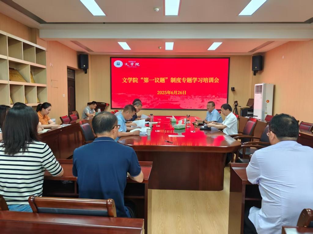为深入学习贯彻党的创新理论,扎实推进“第一议题”制度落实落细,6月26日,无料AV 党委在人文楼三楼会议室组织召开“第一议题”制度专题学习培训会。学院全体班子成员、各党支部书记参加培训。