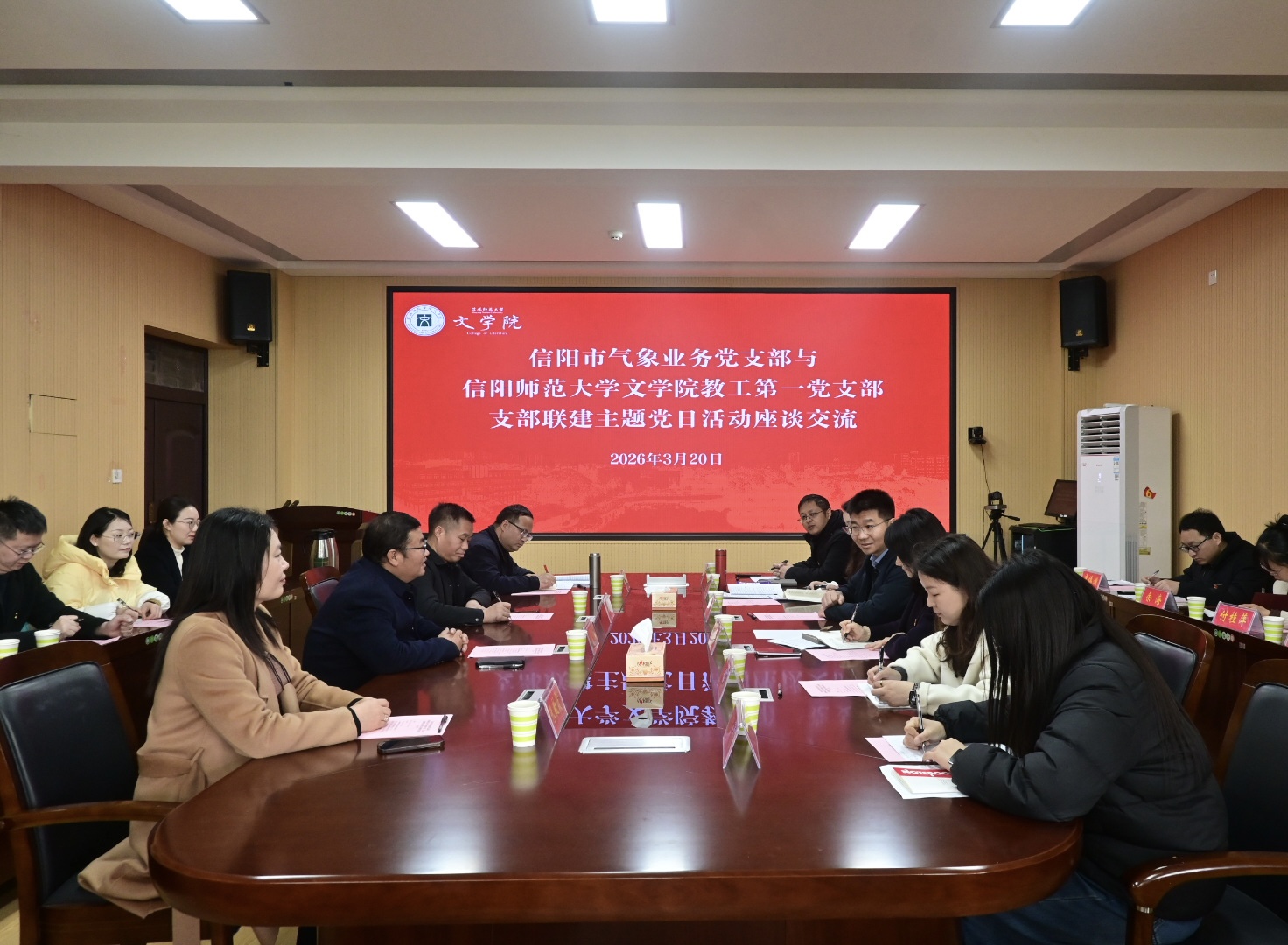 3月20日,无料AV 教工第一党支部与信阳市气象局业务党支部联合开展“守牢安全底线践初心 深耕淮域文脉担使命”主题党日活动。信阳市气象局党组书记、局长于庆学,党组成员、副局长胡玉梅,无料AV 党委书记周贤亮等参加活动。